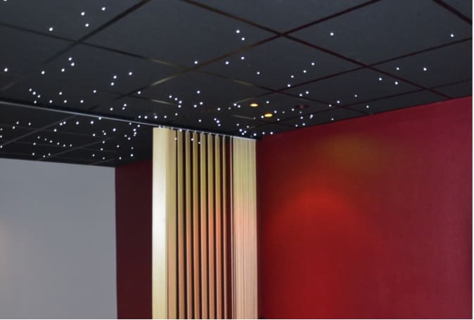 Les salons portent le nom d’une planète et sont agrémentés d’un plafond éclairé comme une voûte céleste.